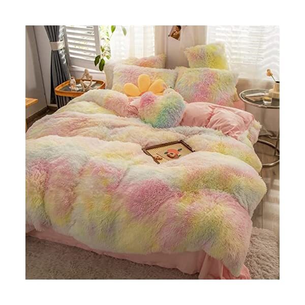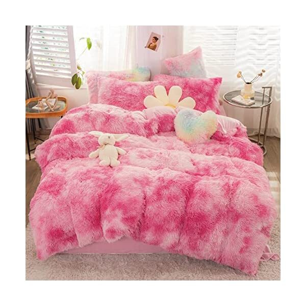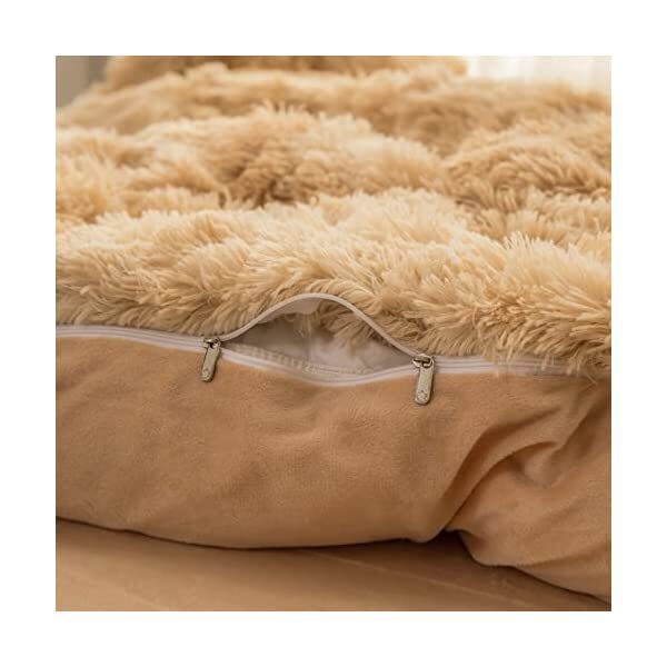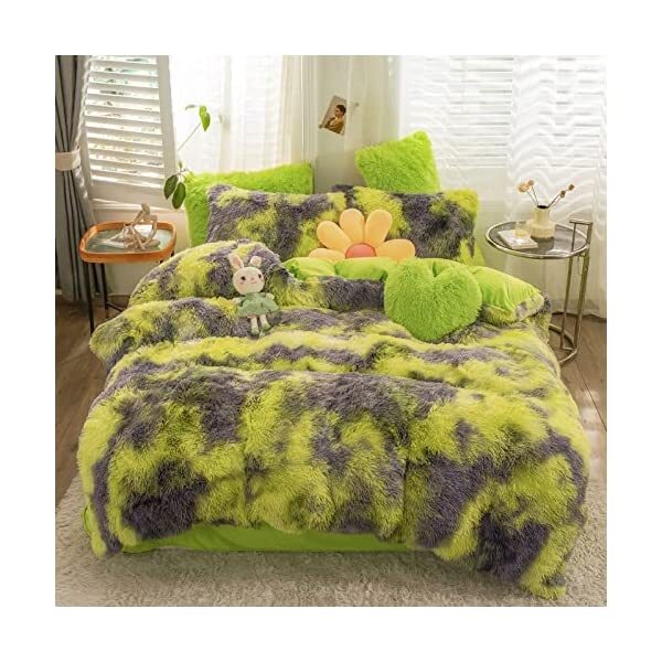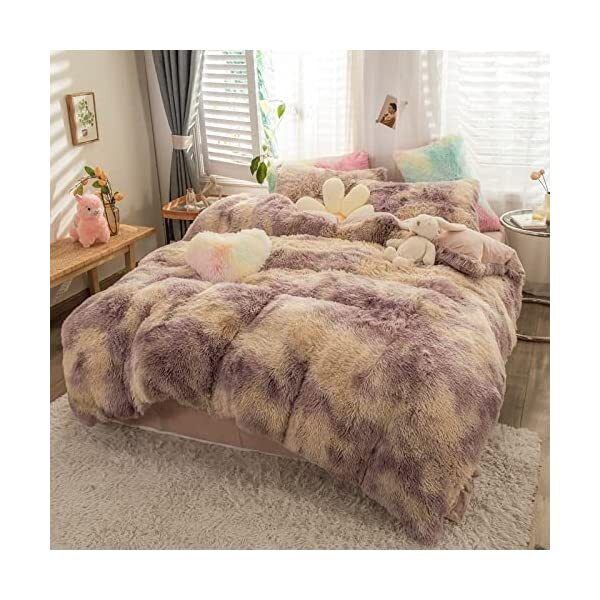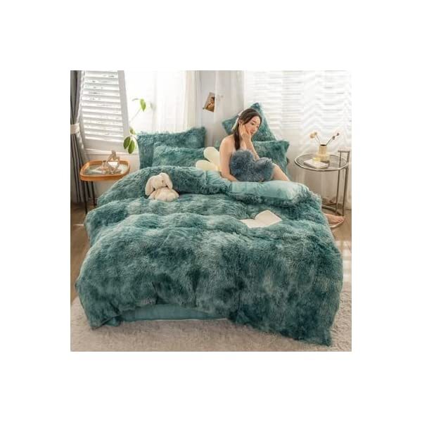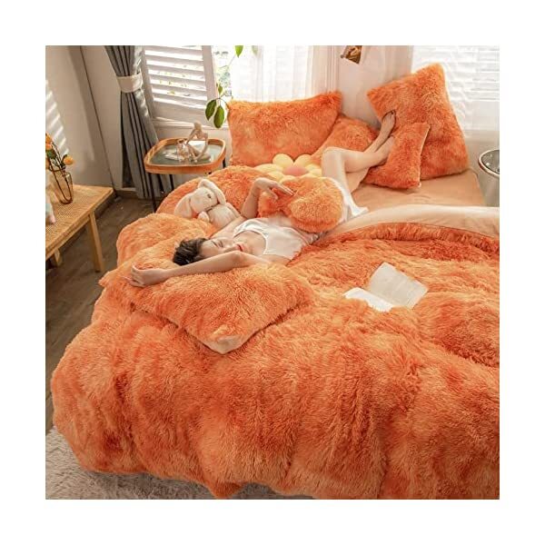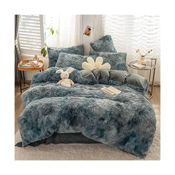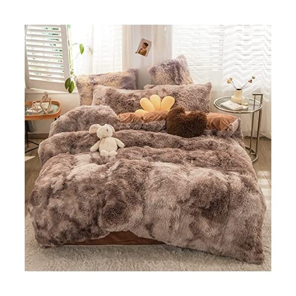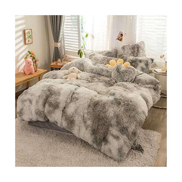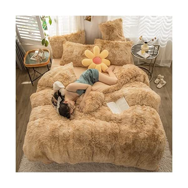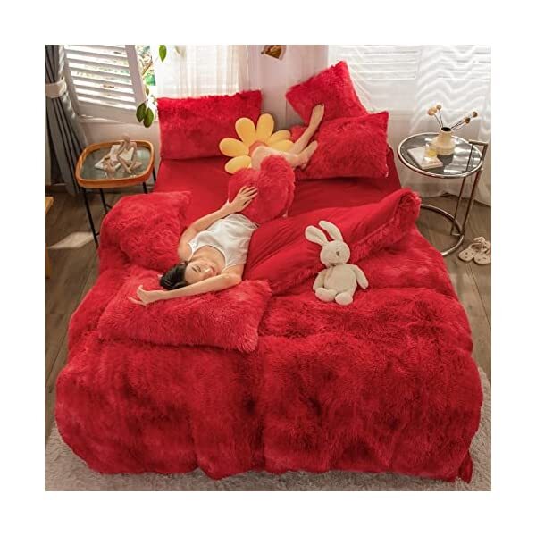 【EASY TO WASH】Cold wash machine. Gentle cycle. Tumble dry low. Do not bleach. Cool Iron when needed after wash. We advise you wash the set and using fabric softener before putting it over your comforter. 【ZIPPER & TIE】Strong and Sturdy metal zipper reduce your time on bed making process to seal your quilt, comforter or duvet easier and quicker than regular button closure. Ribbon ties in the four corners help to to ensure your comforter fit cover properly even if you move constantly at night. 【HIGH QUALITY FABRIC】The front of the elegant duvet cover is made of microfiber long plush while the back is ultra soft crystal velvet fabric which will make you warm and cozy promptly during the cold weather, luxury touch to your sleeping space with the smooth. 【WHAT YOU CAN GET】: 4 PCS shaggy fluffy queen size bedding set, 2PC pillow cases 19" x 30", Soft Duvet cover dimension 96" x 98"/100", Matching cozy pillow sham dimension 19"x30". 【PLUSH DUVET COVER】This high quality comfy faux fur duvet cover does not shed. Using the duvet cover without a duvet inside on warm summer and put down comforter inside in the colder months. A great gift for everybody, every festival and special occasion, perfectly decorate your room in a comfortable and fashionable way.